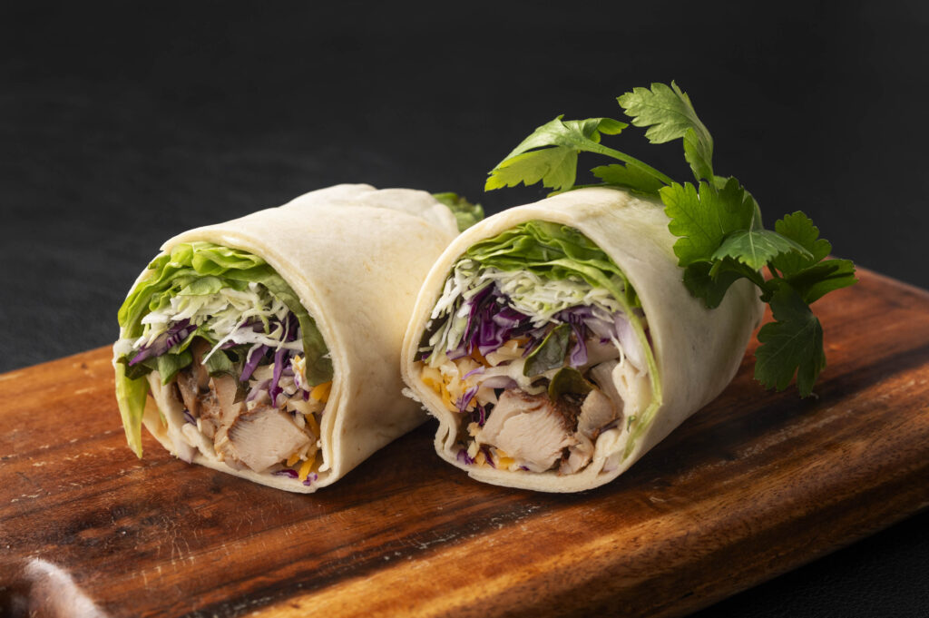 ③全ての材料をトルティーヤに乗せて巻く