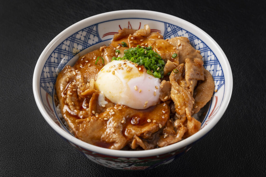 ③ご飯を盛り付けて焼いた豚肉を盛り付ける